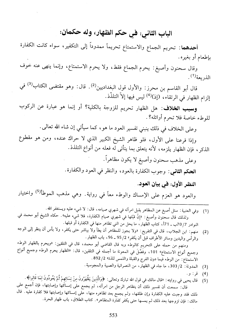 الباب الثاني: في حكم الظهار، وله حكمان