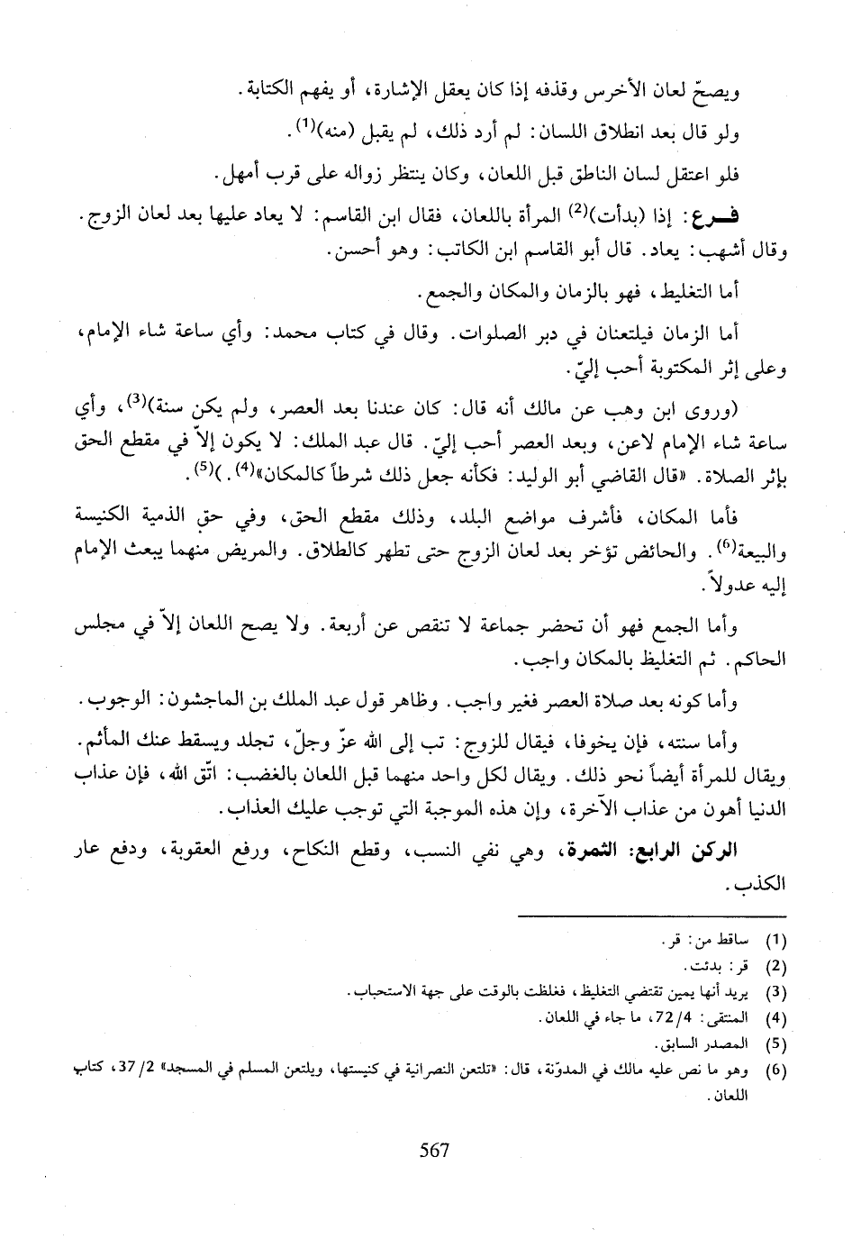 الركن الرابع: الثمرة، وهي نفي النسب، وقطع النكاح، ورفع العقوبة، ودفع عار الكذب.