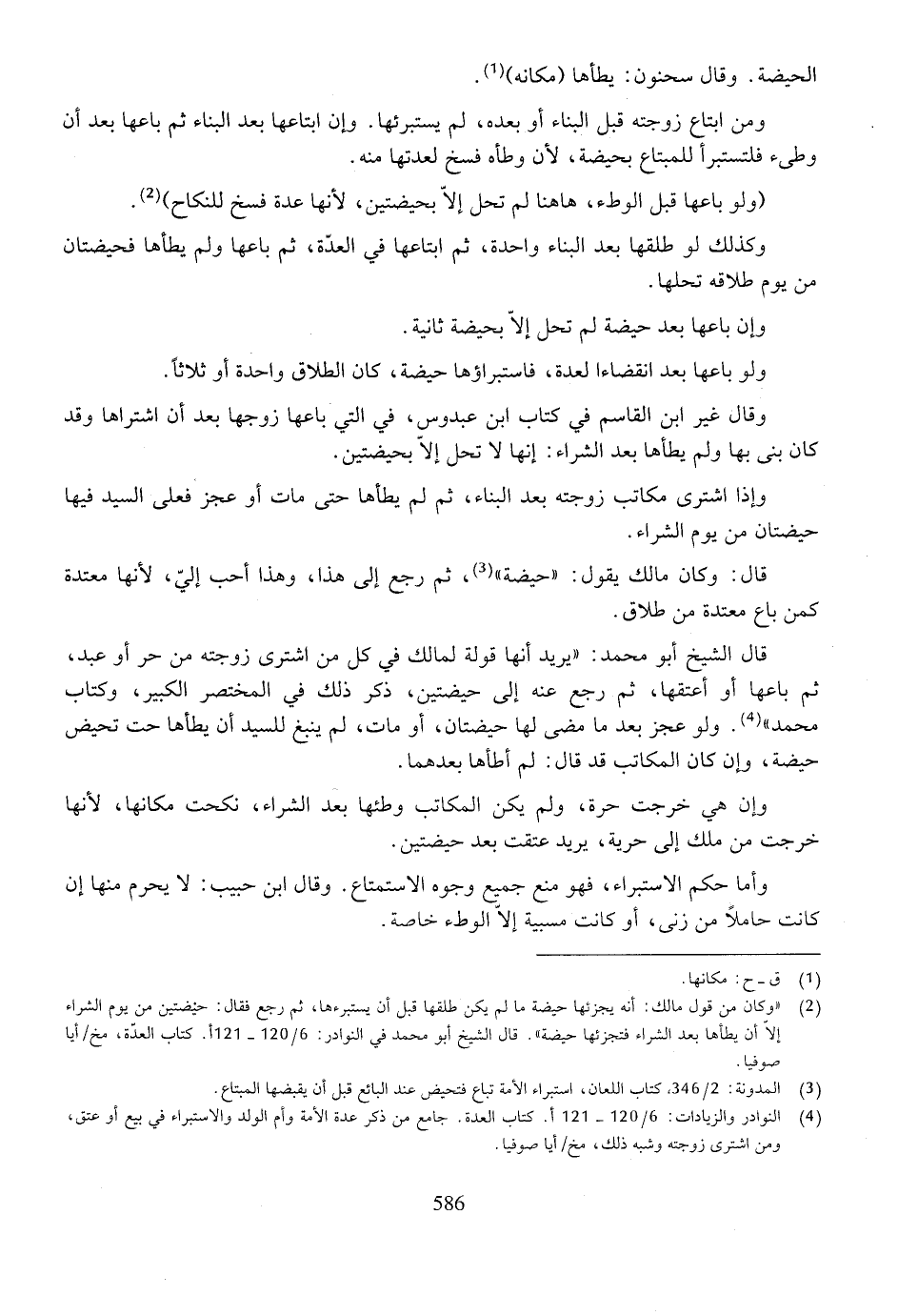 الحيضة. وقال سحنون: يطأها (مكانه).