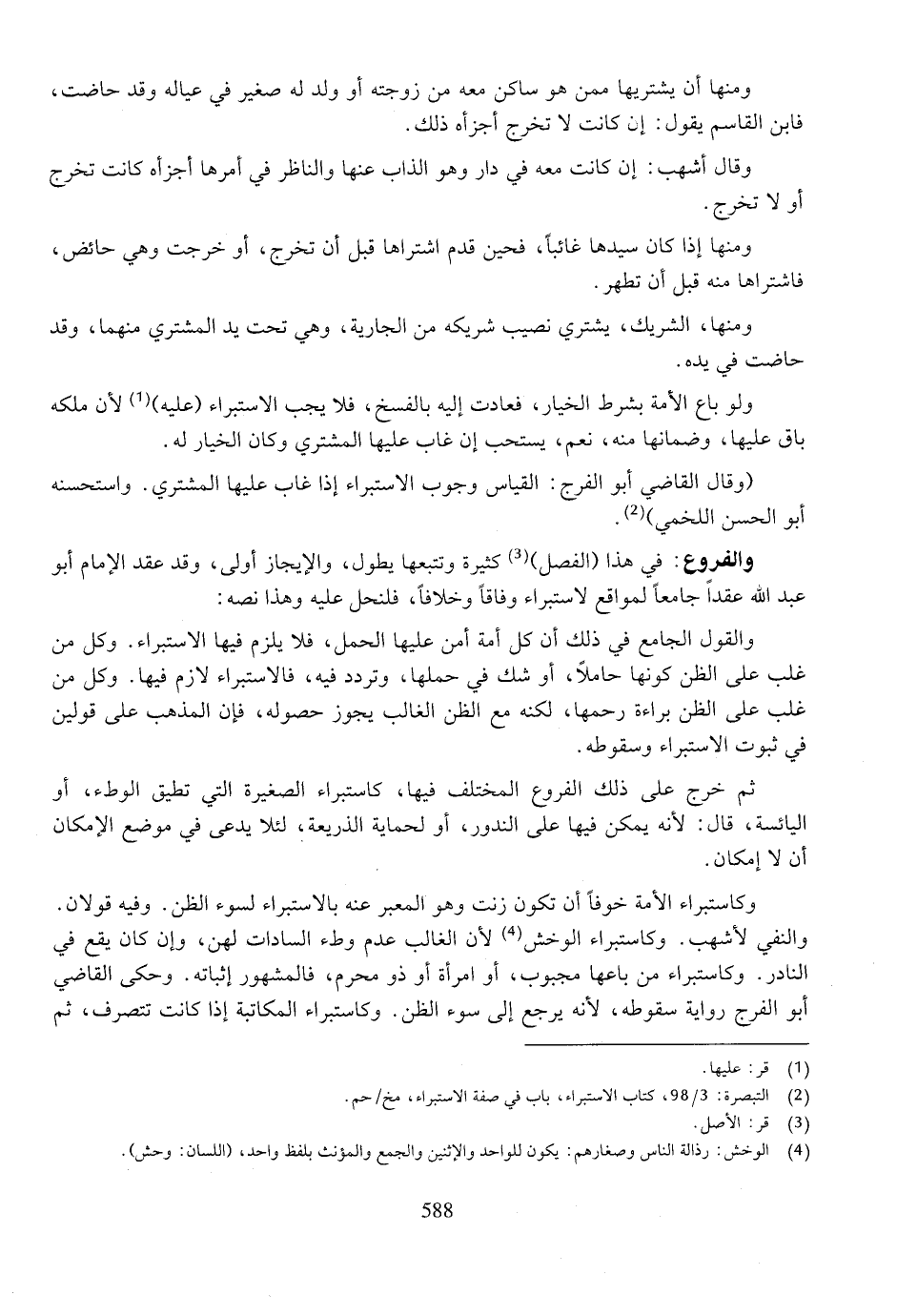 والفروع: في هذا (الفصل) كثيرة وتتبعها يطول، والإيجاز أولى، وقد عقد الإمام أبو عبد الله عقداً جامعاً لمواقع لاستبراء وفاقاً وخلافاً، فلنحل عليه وهذا نصه: