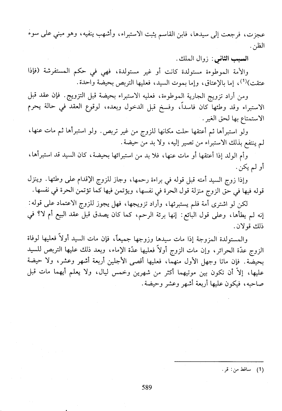عجزت، فرجعت إلى سيدها، فابن القاسم يثبت الاستبراء، وأشهب ينفيه، وهو مبني على سوء الظن.