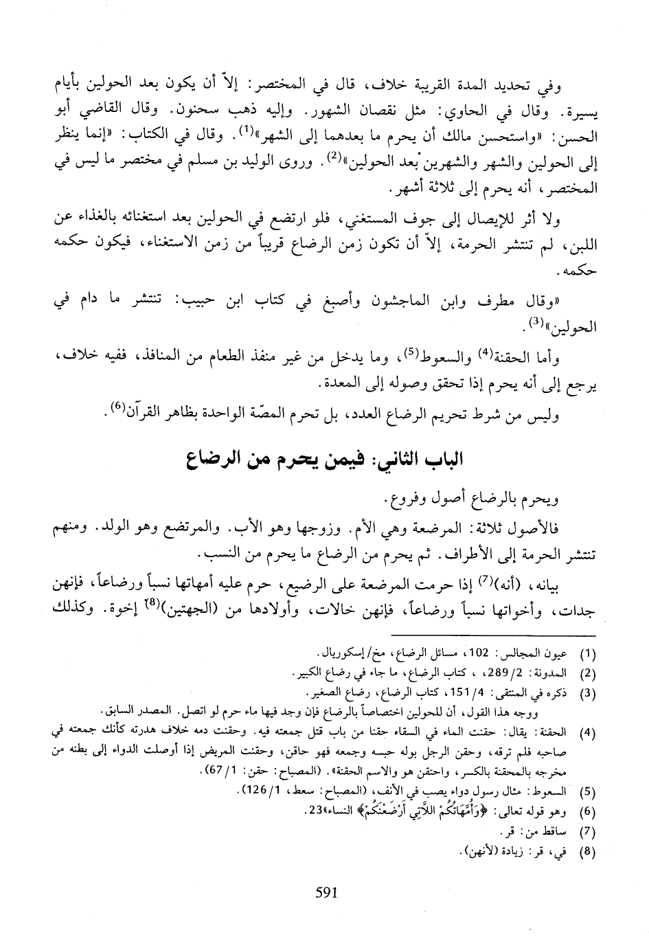 وفي تحديد المدة القريبة خلاف، قال في المختصر: إلا أن يكون بعد الحولين بأيام يسيرة. وقال في الحاوي: مثل نقصان الشهور. وإليه ذهب سحنون. وقال القاضي أبو الحسن: ((واستحسن مالك أن يحرم ما بعدهما إلى الشهر)). وقال في الكتاب: ((إنما ينظر إلى الحولين والشهر والشهرين بعد الحولين)). وروى الوليد بن مسلم في مختصر ما ليس في المختصر، أنه يحرم إلى ثلاثة أشهر.