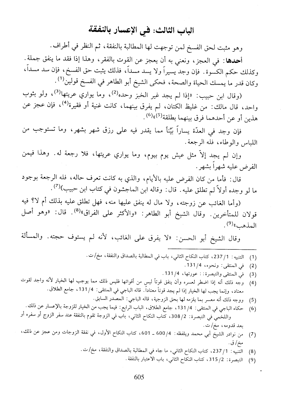 وهو مثبت لحق الفسخ لمن توجهت لها المطالبة بالنفقة، ثم النظر في أطراف.