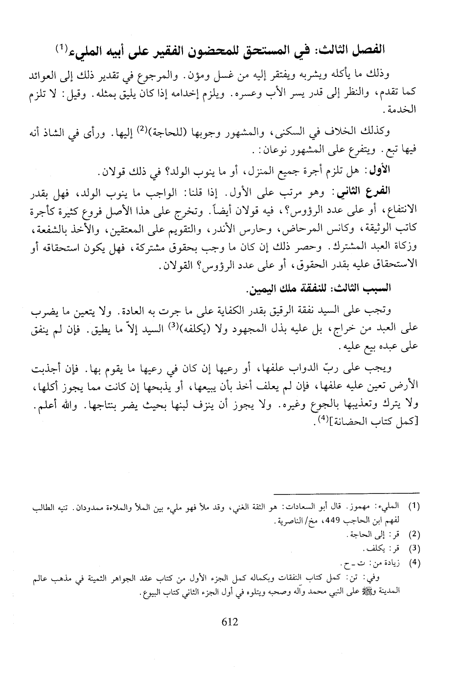 الفصل الثالث: في المستحق للمحضون الفقير على أبيه المليء