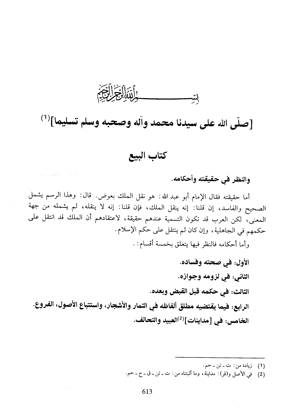 وأما أحكامه فالنظر فيها يتعلق بخمسة أقسام: