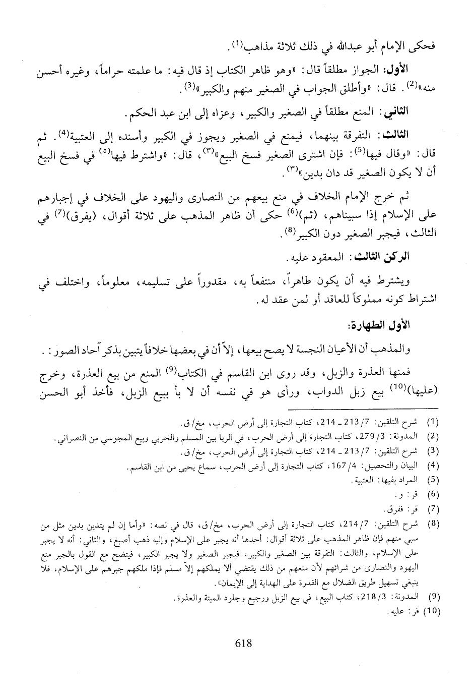 الثالث: التفرقة بينهما، فيمنع في الصغير ويجوز في الكبير وأسنده إلى العتبية. ثم قال: ((وقال فيها: فإن اشترى الصغير فسخ البيع))، قال: ((واشترط فيها في فسخ البيع أن لا يكون الصغير قد دان بدين)).
