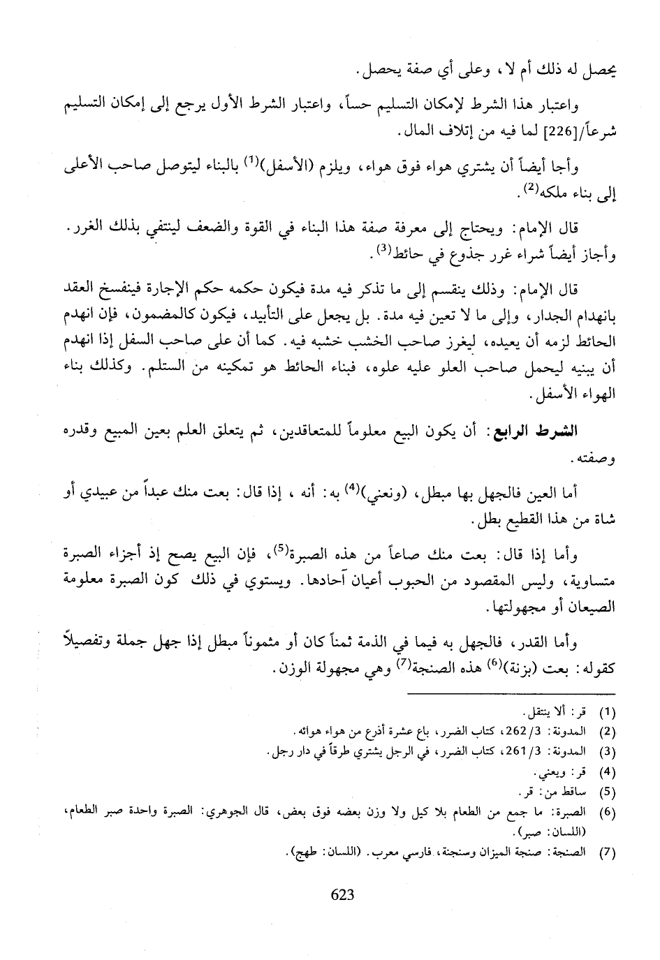 واعتبار هذا الشرط لإمكان التسليم حساً، واعتبار الشرط الأول يرجع إلى إمكان التسليم شرعاً لما فيه من إتلاف المال.
