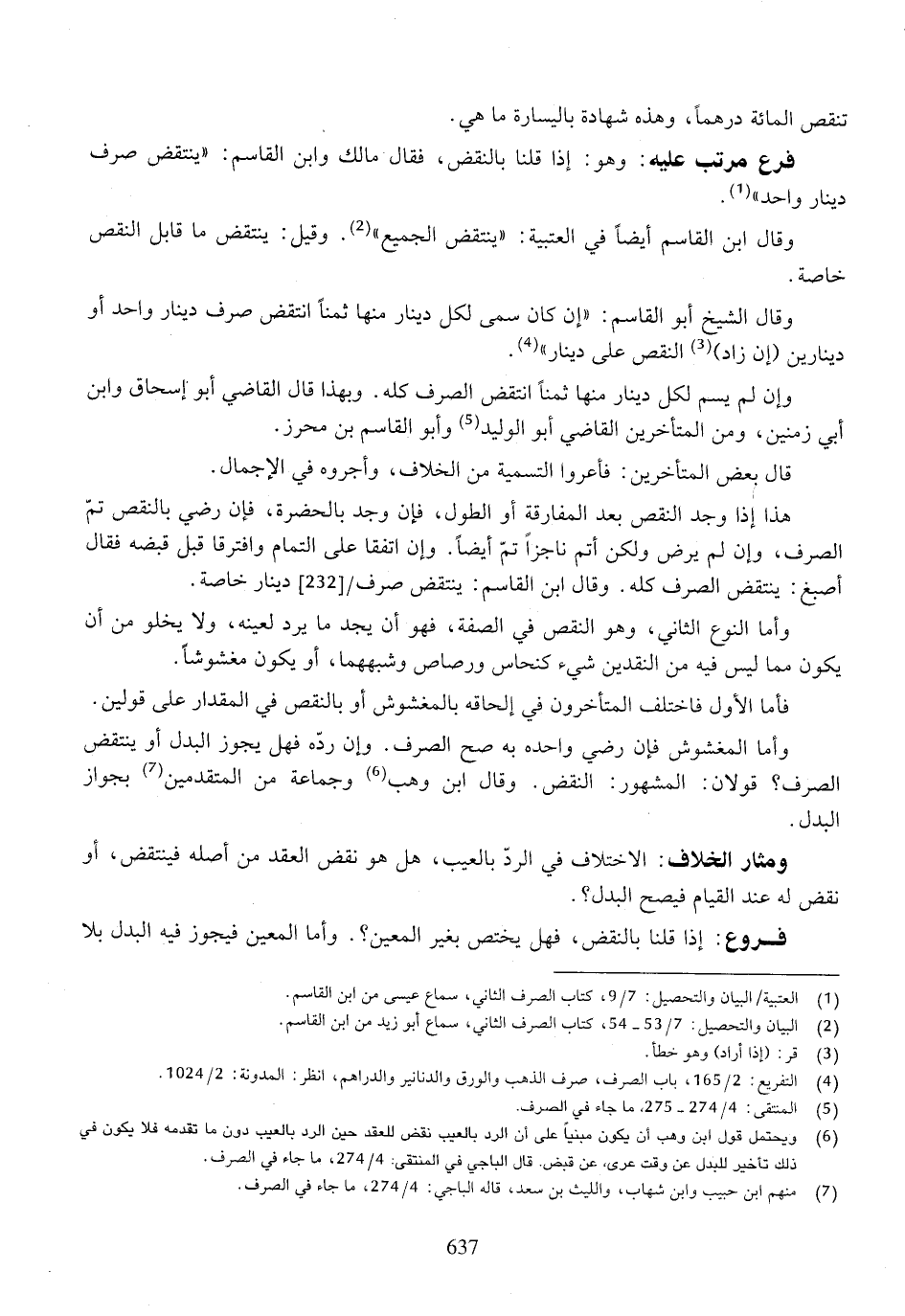هذا إذا وجد النقص بعد المفارقة أو الطول، فإن وجد بالحضرة، فإن رضي بالنقص تم الصرف، وإن لم يرض ولكن أتم ناجزاً تم أيضاً. وإن اتفقا على التمام وافترقا قبل قبضه فقال أصبغ: ينتقض الصرف كله. وقال ابن القاسم: ينتقض صرف دينار خاصة.