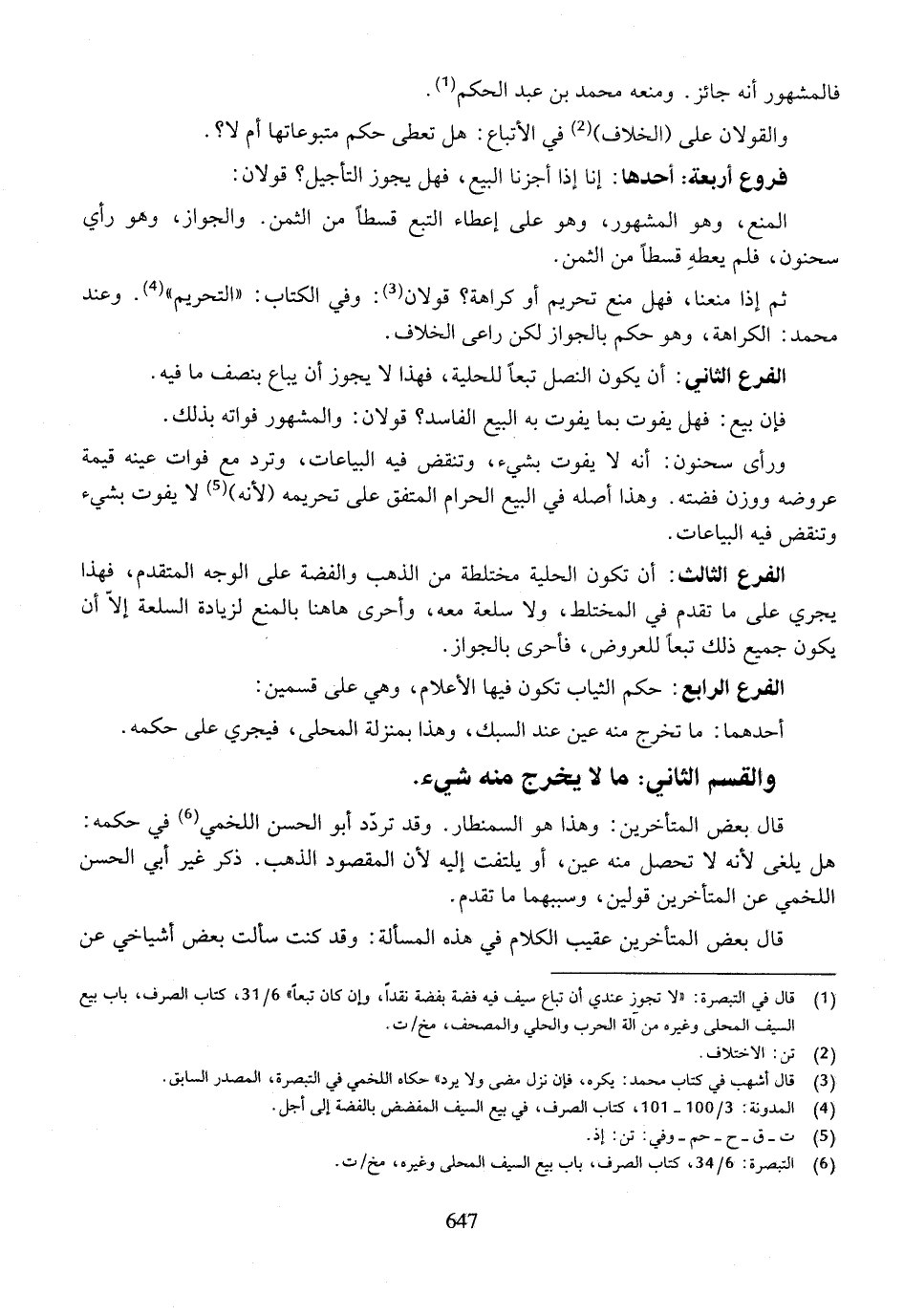 الفرع الثالث: أن تكون الحلية مختلطة من الذهب والفضة على الوجه المتقدم، فهذا يجري على ما تقدم في المختلط، ولا سلعة معه، وأحرى ها هنا بالمنع لزيادة السلعة إلا أن يكون جميع ذلك تبعاً للعروض، فأحرى بالجواز.