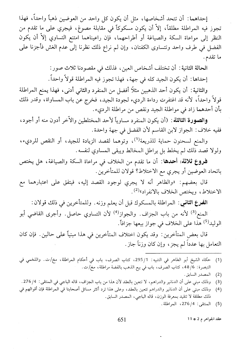 الفرع الثاني: المراطلة بالمسكوك قبل أن يعلم وزنه. وللمتأخرين في ذلك قولان: