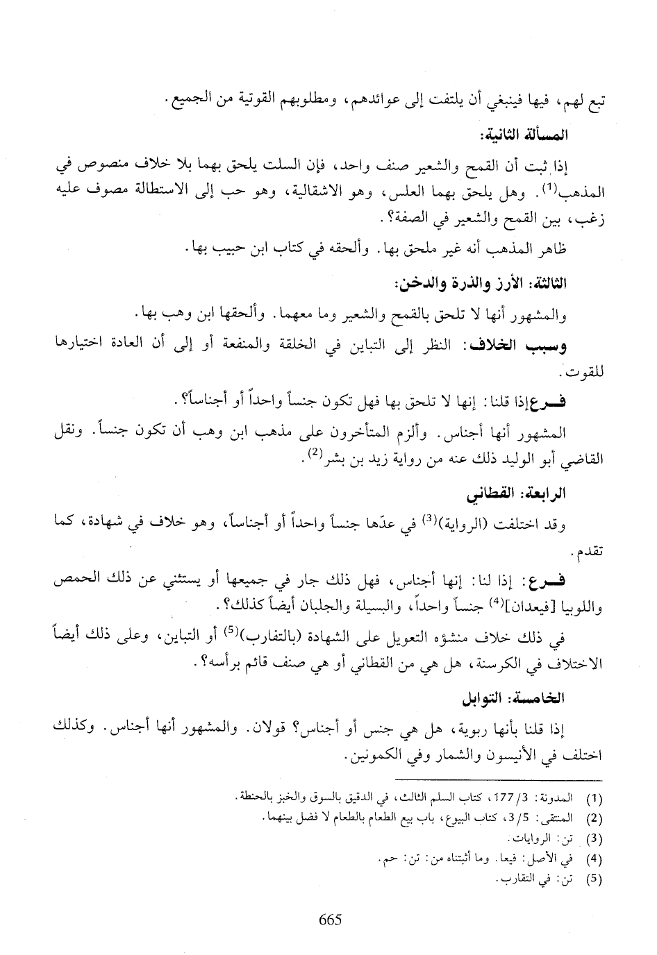 في ذلك خلاف منشؤه التعويل على الشهادة (بالتقارب) أو التباين، وعلى ذلك أيضاً الاختلاف في الكرسنة، هل هي من القطاني أو هي صنف قائم برأسه؟