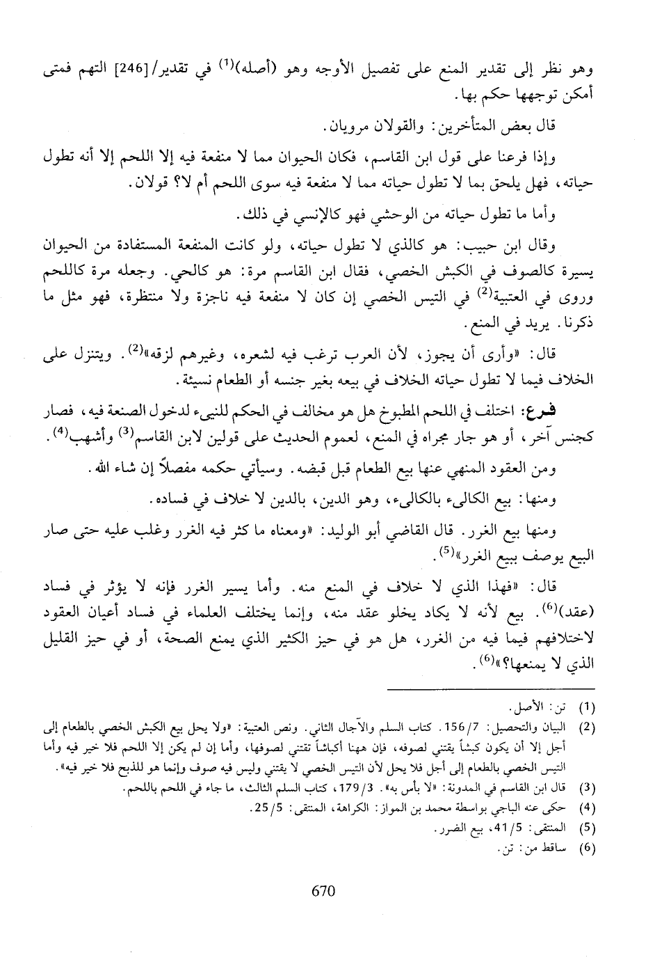 وقال ابن حبيب: هو كالذي لا تطول حياته، ولو كانت المنفعة المستفادة من الحيوان يسيرة كالصوف في الكبش الخصي، فقال ابن القاسم مرة: هو كالحي. وجعله مرة كاللحم وروى في العتبية في التيس الخصي إن كان لا منفعة فيه ناجزة ولا منتظرة، فهو مثل ما ذكرنا. يريد في المنع.