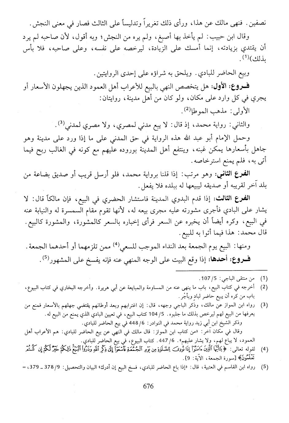 وبيع الحاضر للبادي. ويلحق به شراؤه على إحدى الروايتين.