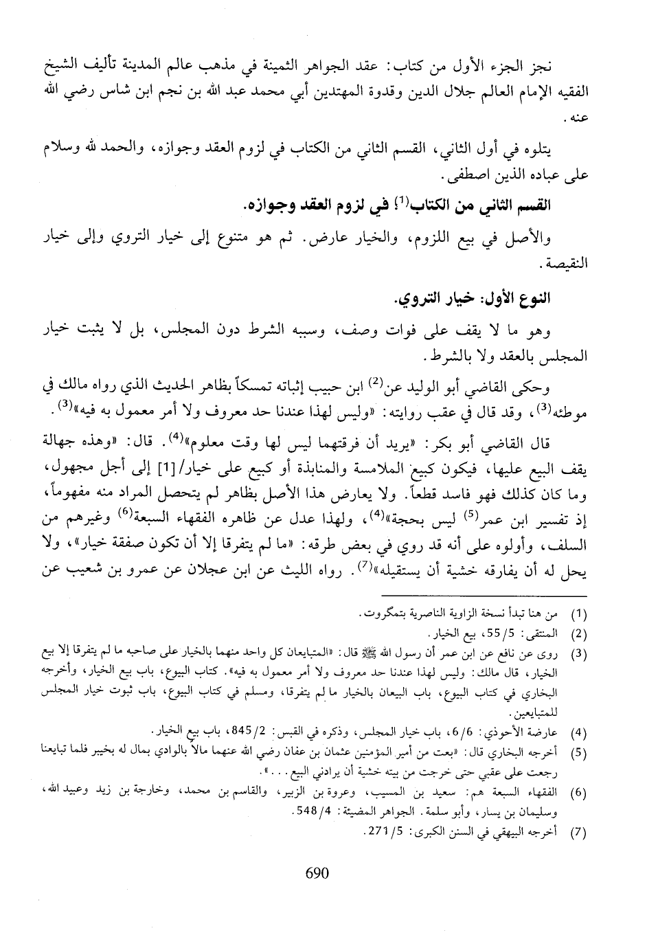 يتلوه في أول الثاني، القسم الثاني من الكتاب في لزوم العقد وجوازه، والحمد لله وسلام على عباده الذين اصطفى.