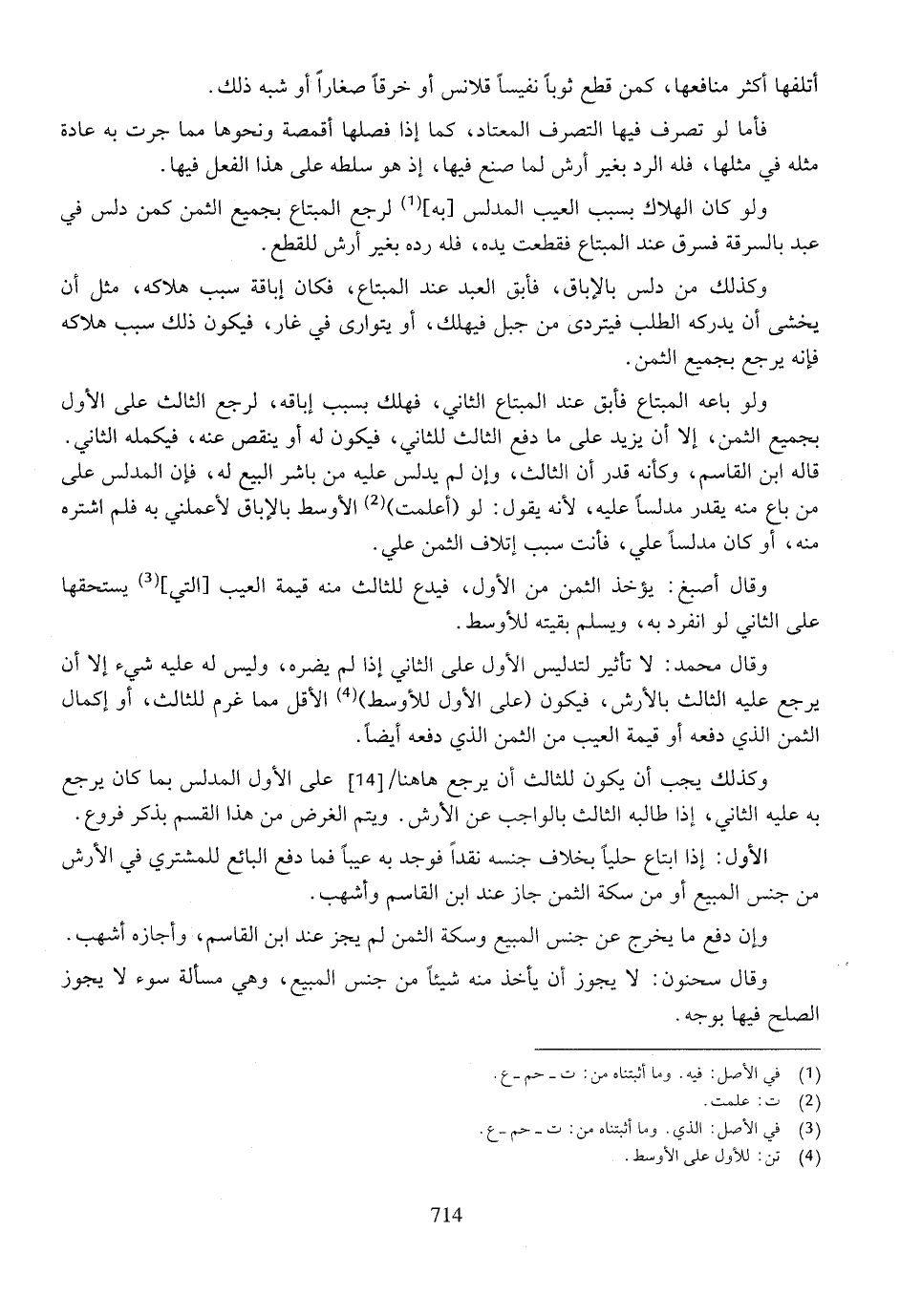 وكذلك يجب أن يكون للثالث أن يرجع ها هنا على الأول المدلس بما كان يرجع به عليه الثاني، إذا طالبه الثالث بالواجب عن الأرش. ويتم الغرض من هذا القسم بذكر فروع.