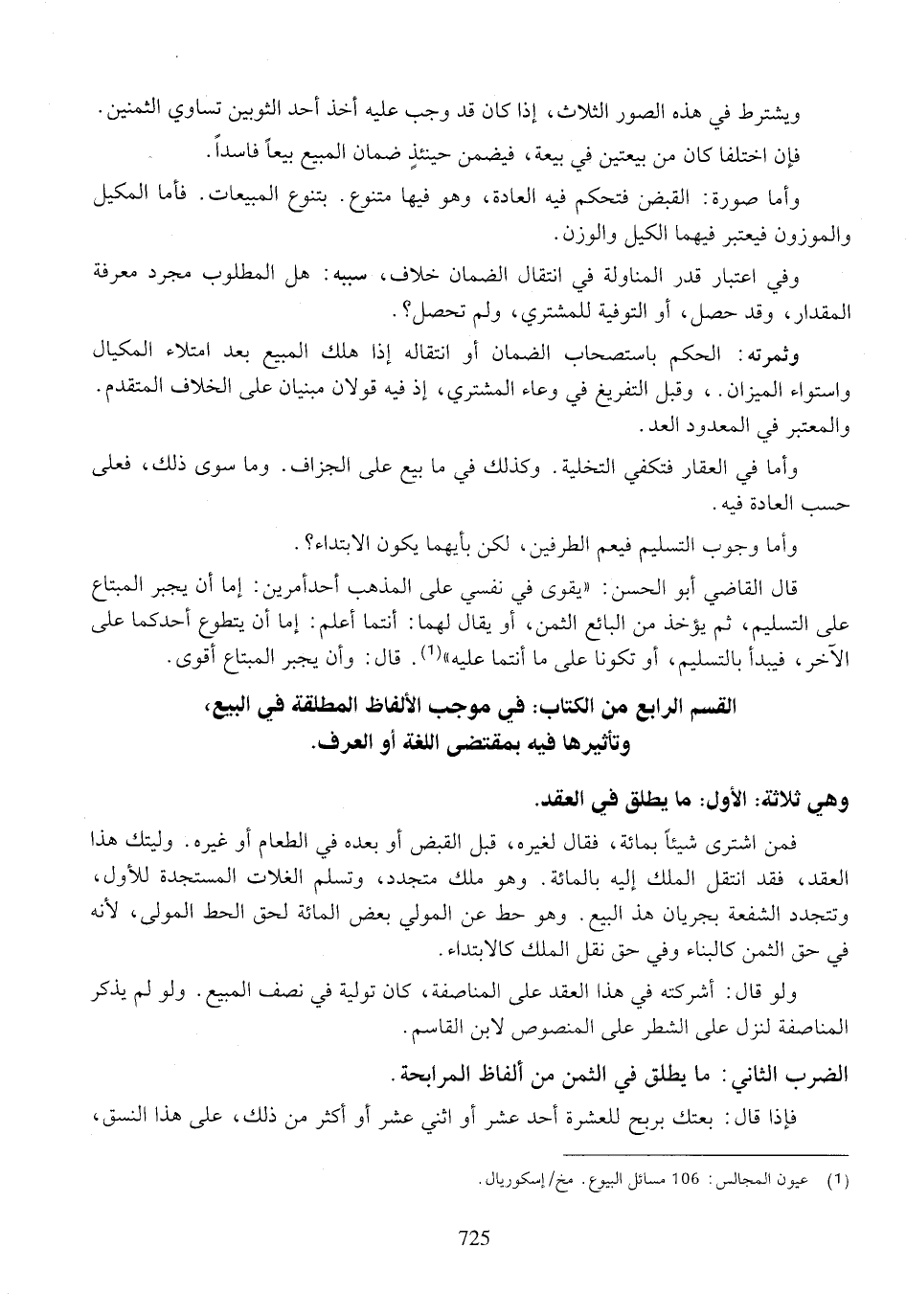 القسم الرابع من الكتاب: في موجب الألفاظ المطلقة في البيع، وتأثيرها فيه بمقتضى اللغة أو العرف.