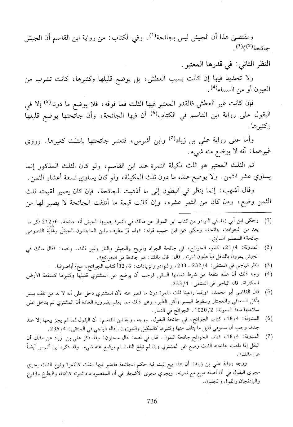 وأما على رواية علي بن زياد وابن أشرس، فتعتبر جائحتها بالثلث كغيرها. وروى غيرهما: أنه لا يوضع منه شيء.