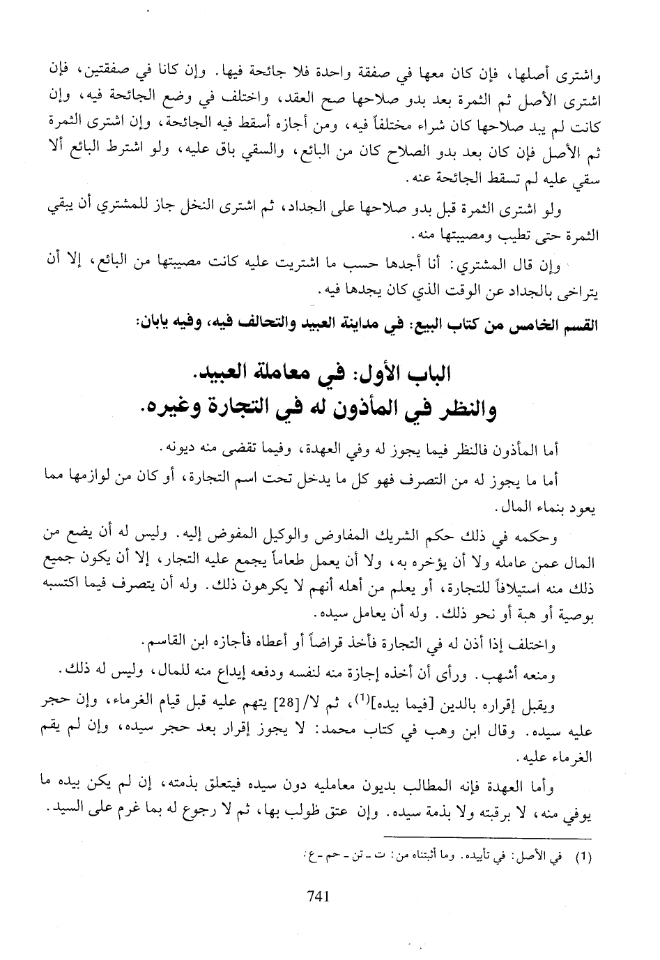 القسم الخامس من كتاب البيع: في مداينة العبيد والتحالف فيه، وفيه بابان: