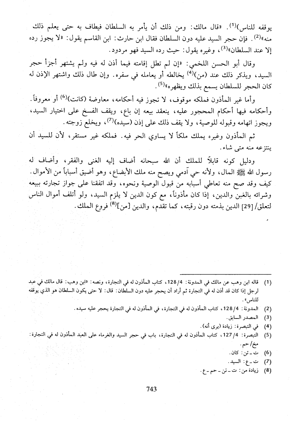 يوقفه للناس). ((قال مالك: ومن ذلك أن يأمر به السلطان فيطاف به حتى يعلم ذلك منه)). فإن حجر السيد عليه دون السلطان فقال ابن حارث: ابن القاسم يقول: ((لا يجوز رده إلا عند السلطان))، وغيره يقول: حيث رده السيد فهو مردود.