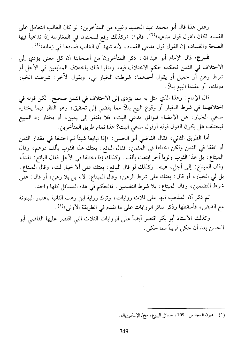 وعلى هذا قال أبو محمد عبد الحميد وغيره من المتأخرين: لو كان الغالب التعامل على الفساد لكان القول قول مدعيه)). قالوا: ((وكذلك وقع لسحنون في المغارسة إذا تداعيا فيها الصحة والفساد، إن القول قول مدعي الفساد، لأنه شهد أن الغالب فسادها في زمانه)).