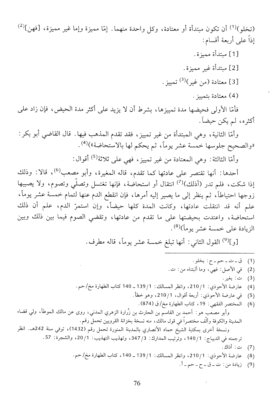 (تخلو) أن تكون مبتدأة أو معتادة، وكل واحدة منهما. إما مميزة وإما غير مميزة، [فهن] إذا على أربعة أقسام.