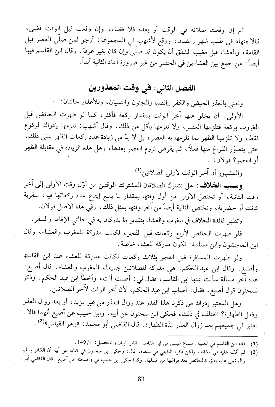 ونعني بالعذر الحيض والكفر والصبا والجنون والنسيان، وللأعذار حالتان: