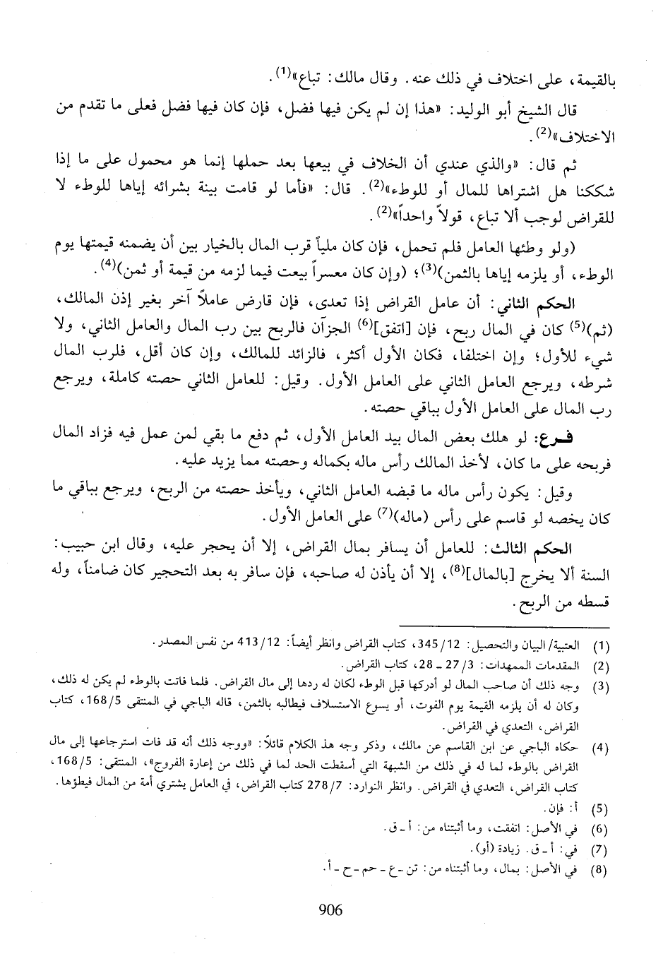 قال الشيخ أبو الوليد: "هذا إن لم يكن فيها فضل، فإن كان فيها فضل فعلى ما تقدم من الاختلاف".