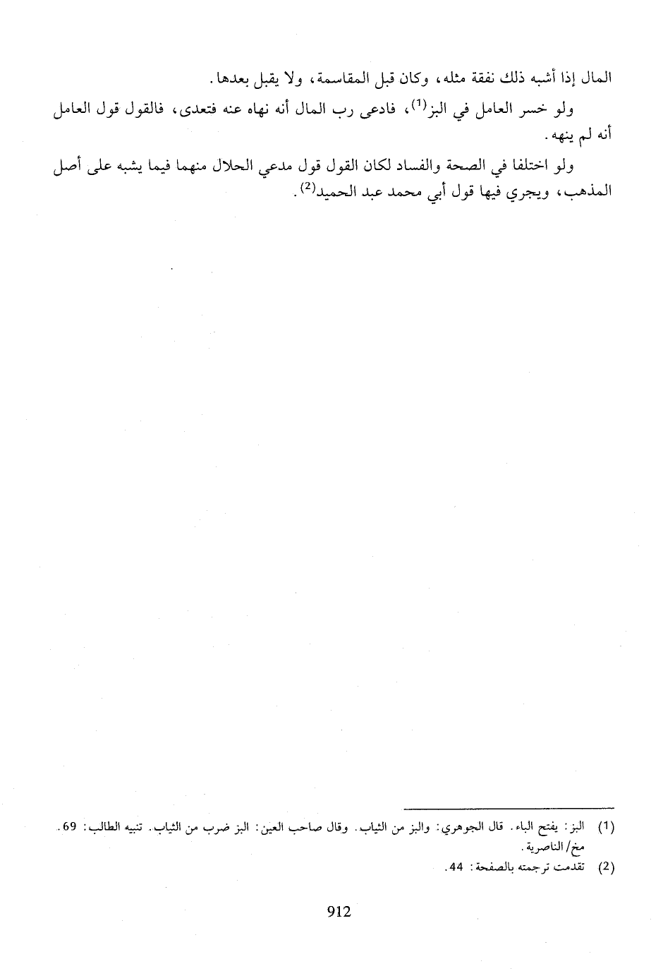 ولو خسر العامل في البز، فادعى رب المال أنه نهاه عنه فتعدى، فالقول قول العامل أنه لم ينهه.