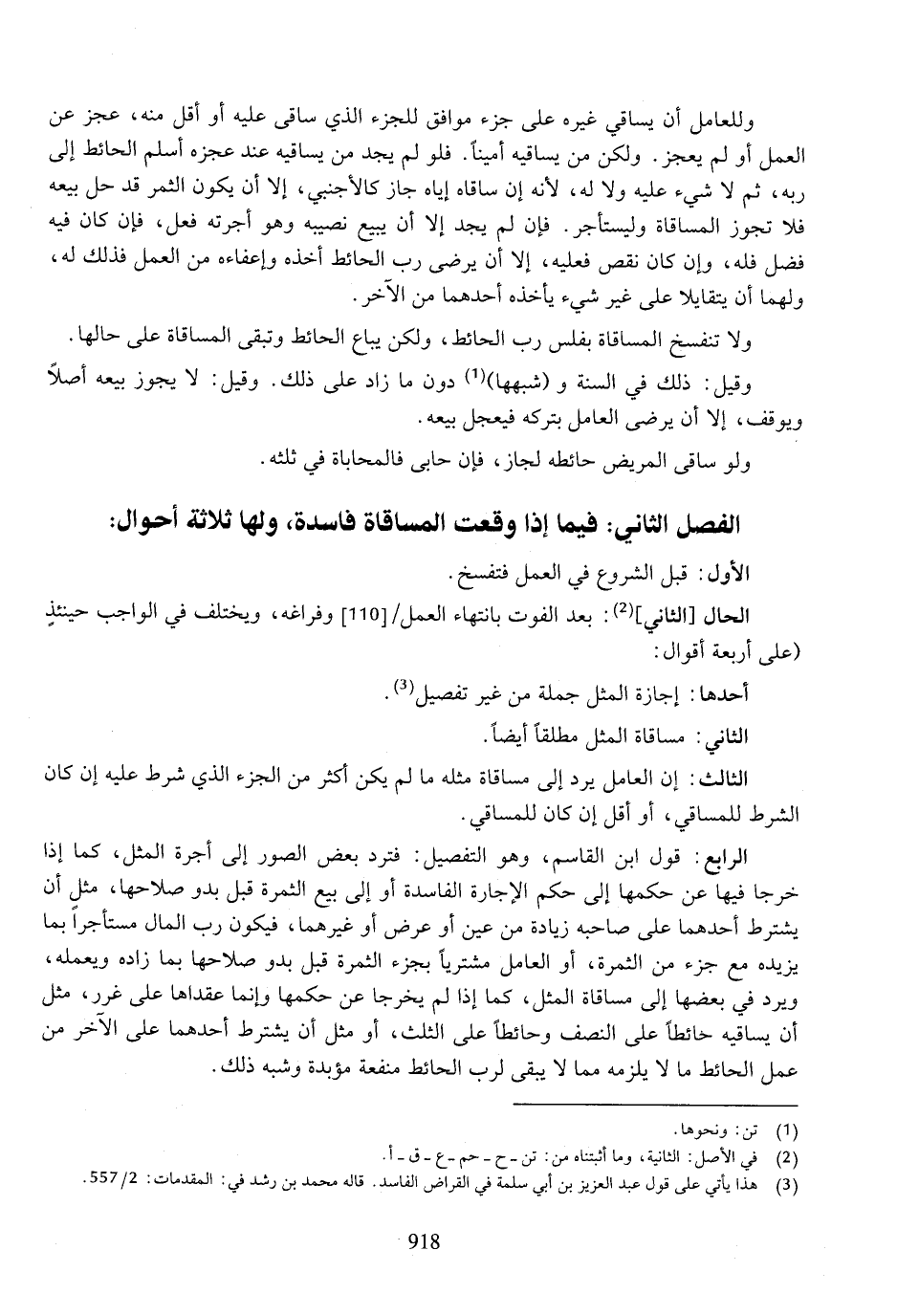 الفصل الثاني: فيما إذا وقعت المساقاة فاسدة، ولها ثلاثة أحوال: