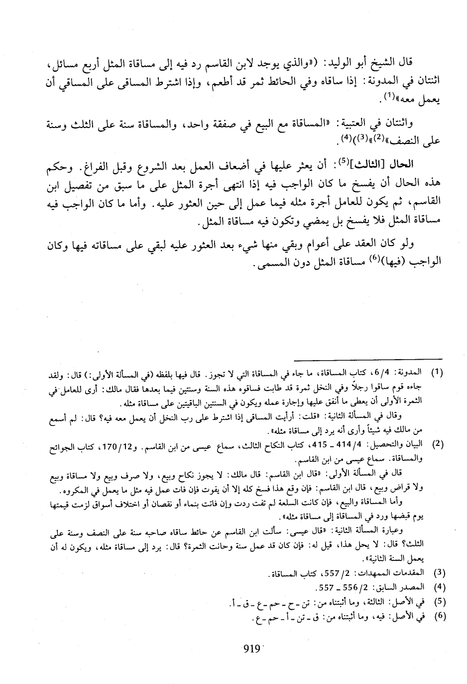 الشيخ أبو الويد: "المساقاة مع البيع في صفقة واحدة، والمساقاة سنة على الثلث وسنة على النصف.