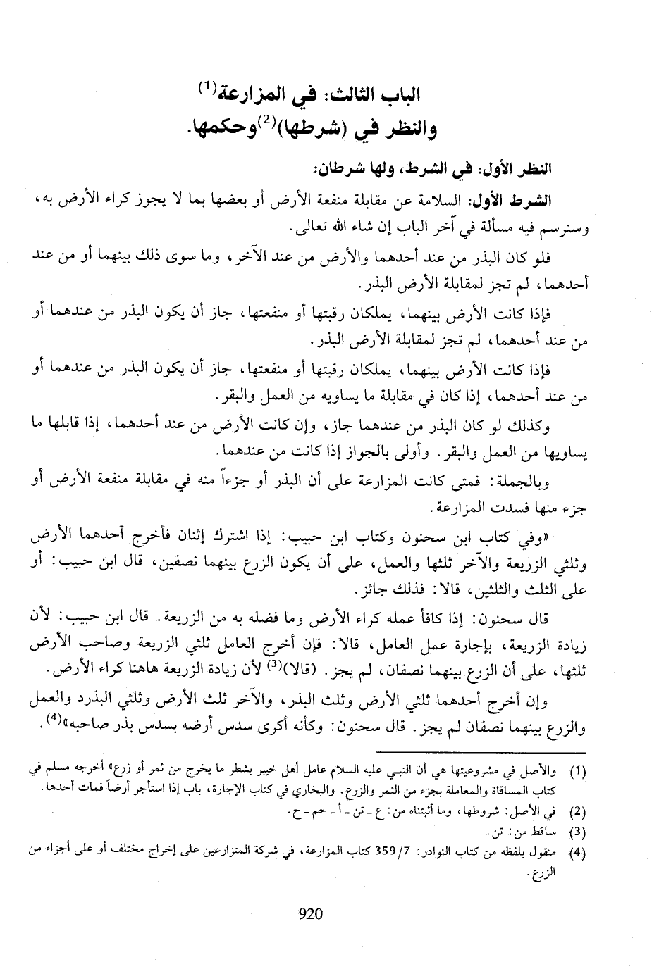 الباب الثالث: في المزارعة والنظر في (شرطها) وحكمها