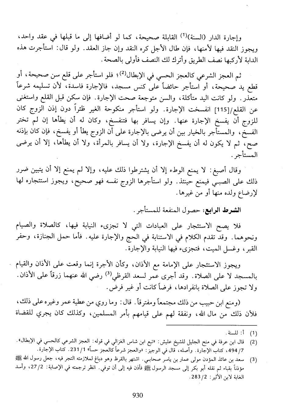 ويجوز الاستئجار على الإمامة مع الأذان، وكأن الأجرة إنما وقعت على الأذان والقيام بالمسجد لا على الصلاة. وقد أجرى عمر لسعد القرظي رضي الله عنهما رزقاً على الآذان. ولا تجوز على الصلة بانفرادها، فرضًا كانت أو غير فرض.