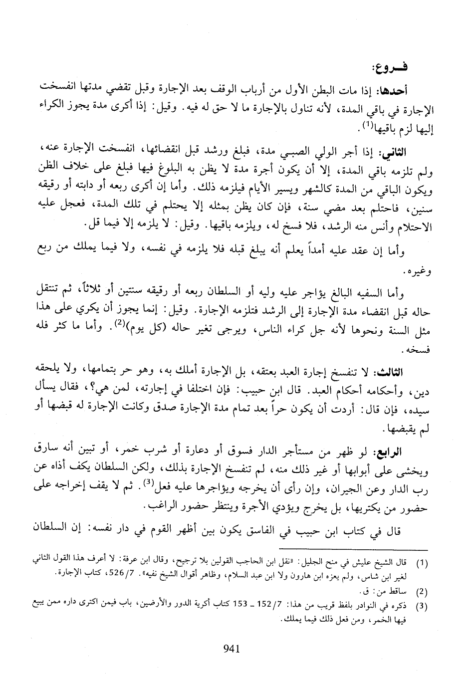 الثاني: إذا أجر الولي الصبي مدة، فبلغ ورشد قبل انقضائها، انفسخت الإجارة عنه، ولم تلزمه باق يالمدة، إلا أن يكون أجرة مدة لا يظن به البلوغ فيها فبلغ على خلاف الظن ويكون الباقي من المدة كالشهر ويسير الأيام فيلزمه ذلك. وأما أن أكرى ربعه أو دابته أو رقيقه سنين، فاحتلم بعد مضي سنة، فإن كان يظن بمثله إلا يحتلم في تلك المدة، فعجل عليه الاحتلام وأنس منه الرشد، فلا فسخ له، ويلزمه باقيها. وقيل: لا يلزمه إلا فيما قل.