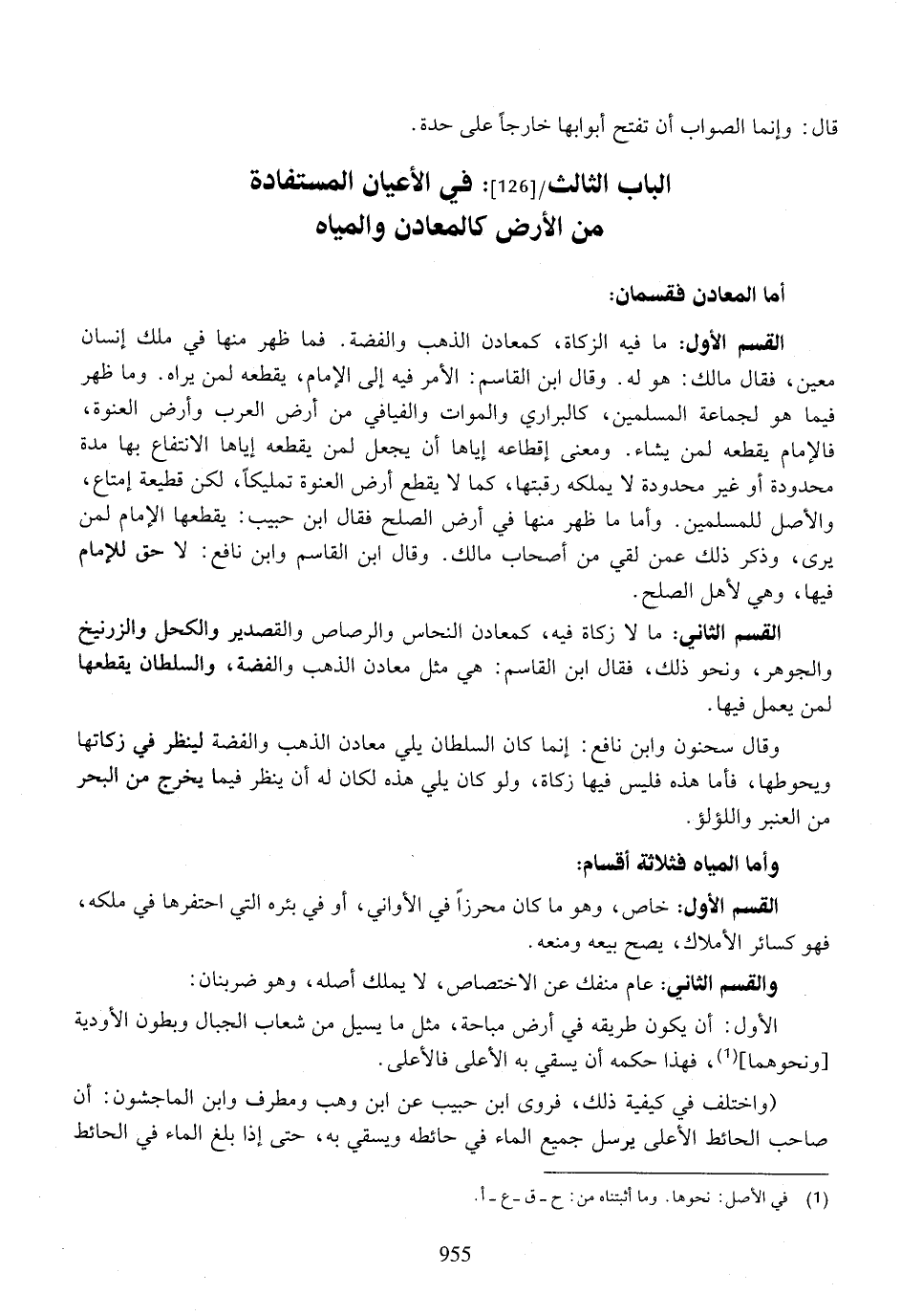 الباب الثالث: في الأعيان المستفادة من الأرض كالمعادن والمياه
