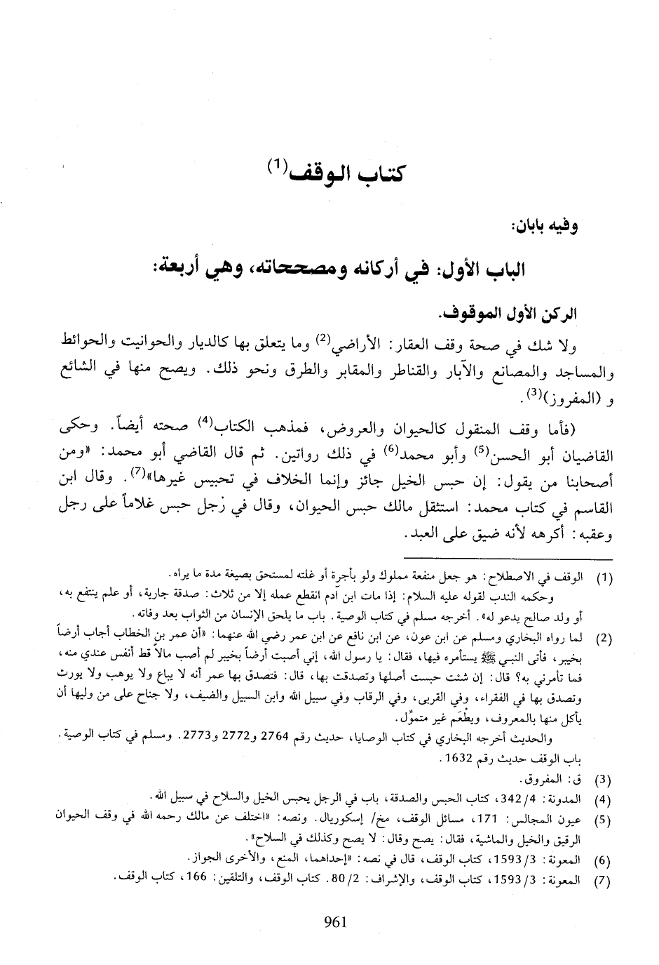ولا شك في صحة وقف العقار: الأراضي وما يتعلق بها كالديار والحوانيت والحوائط والمساجد والمصانع والآبار والقناطر والطرق ونحو ذلك. ويصح منها في الشائع و (المفروز).