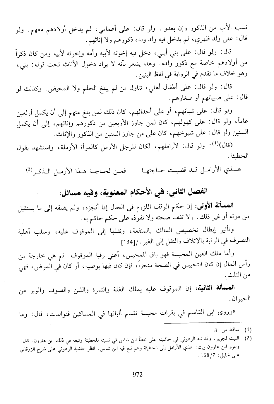 الفصل الثاني: في الأحكام المعنوية، وفيه مسائل: