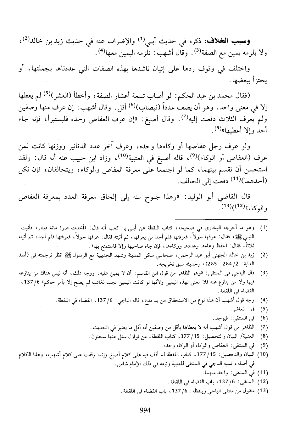 وسبب الخلاف: ذكره في حديث أبي والإضراب عنه في حديث زيد بن خالد، ولا يلزمه يمين مع الصفة. وقال أشهب: تلزمه اليمين معها.