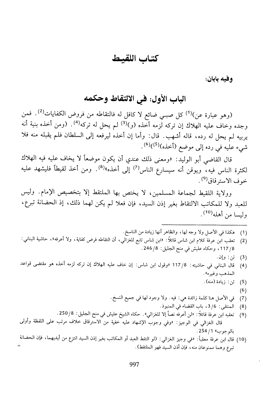 الباب الأول: في الالتقاط وحكمه