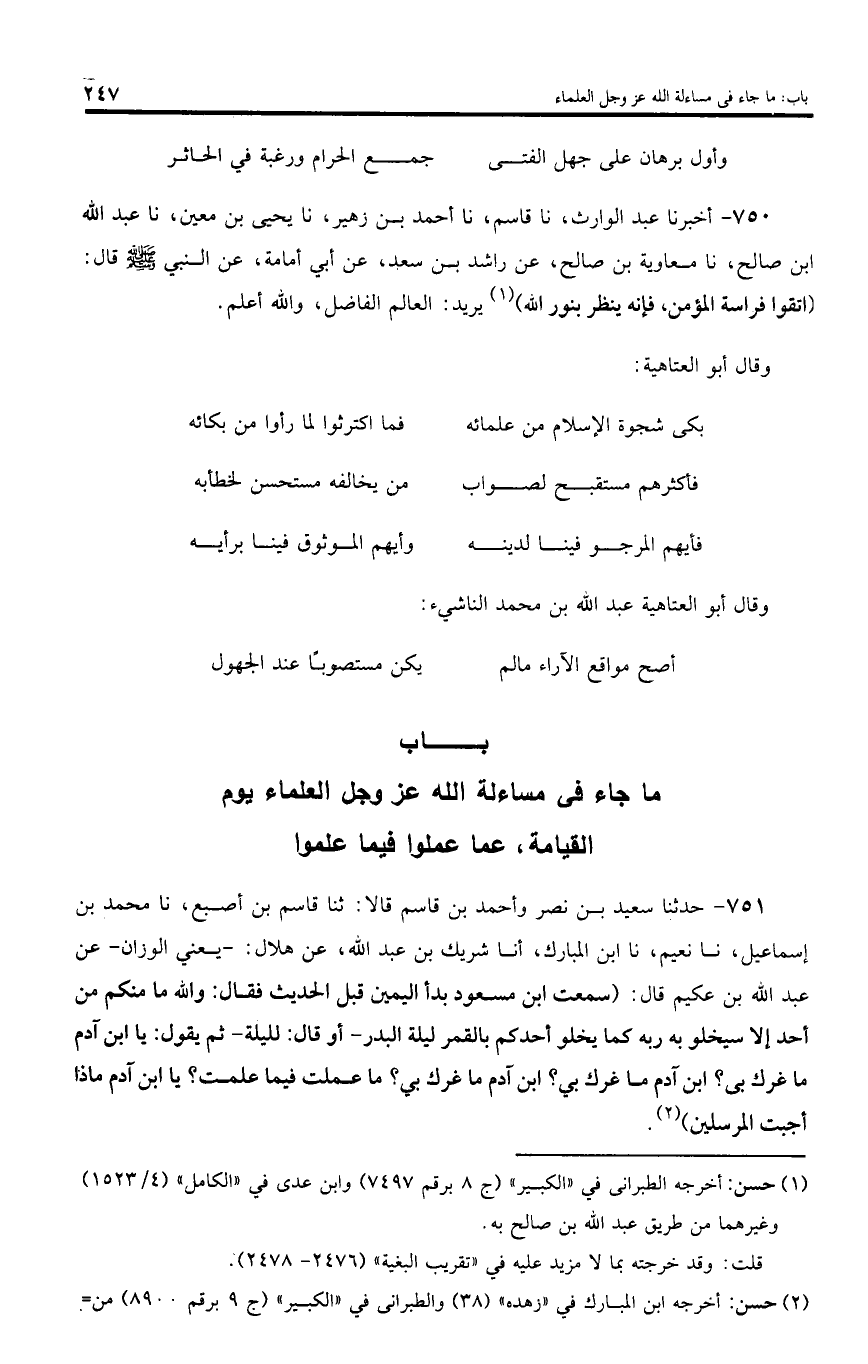 باب ما جاء في مساءلة اللّه عز وجل العلماء يوم القيامة، عما عملوا فيما علموا