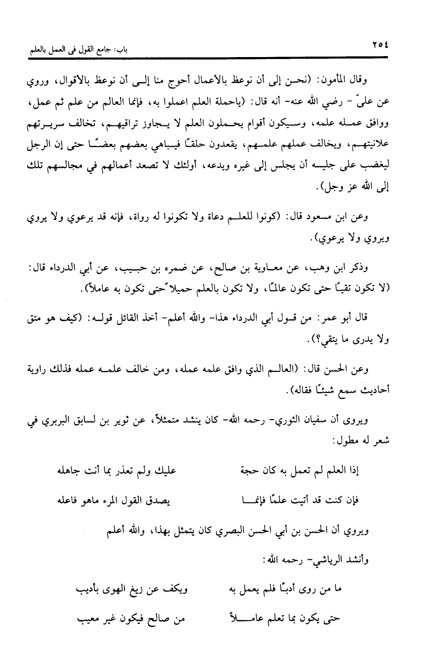 وعن ابن مسعود قال: (كونوا للعلم دعاة ولا تكونوا له رواة، فإنه قد يرعوي ولا يروي ويروي ولا يرعوي).