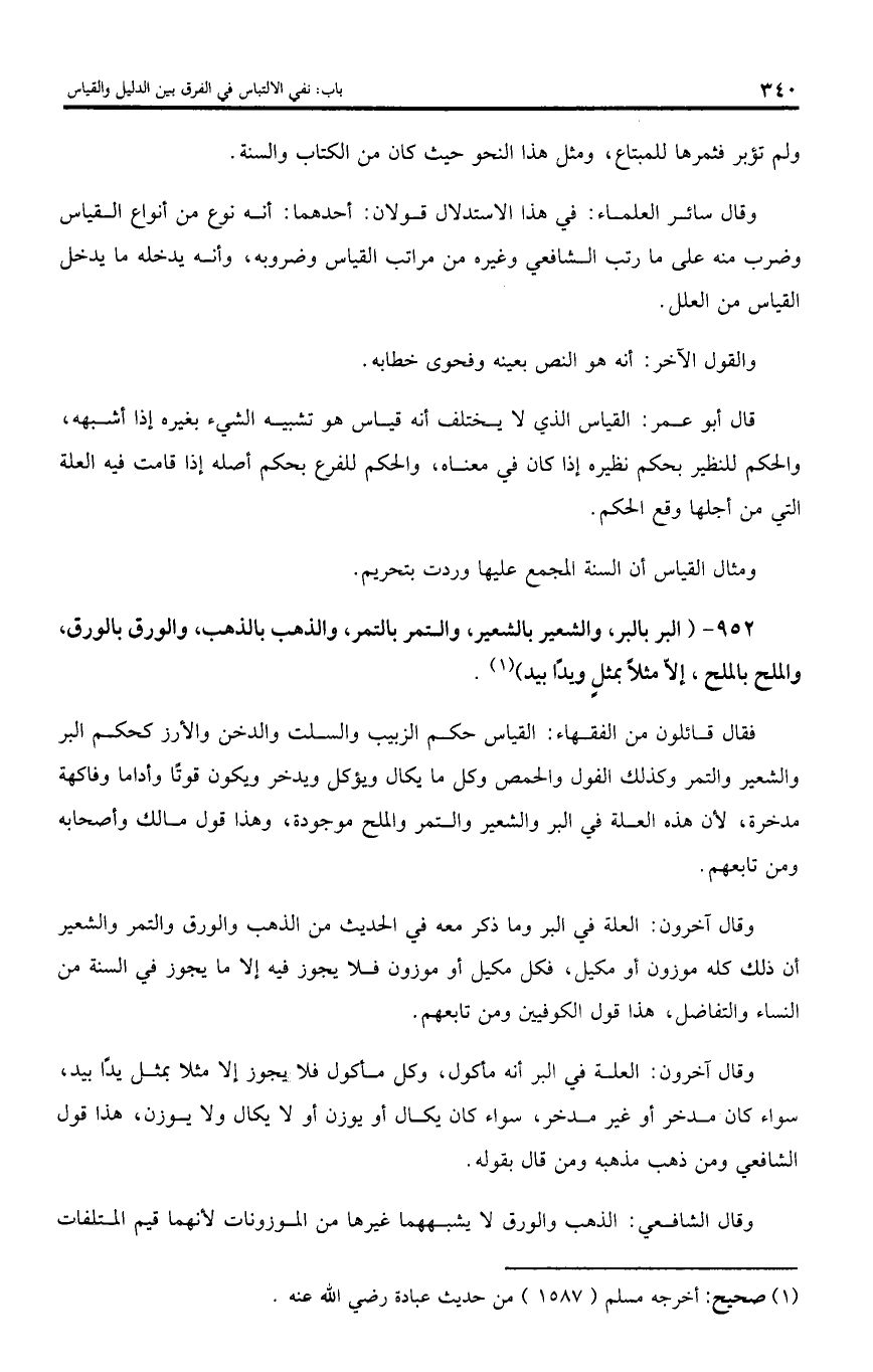 952 - (البر بالبر، والشعير بالشعير، والتمر بالتمر، والذهب بالذهب، والورق بالورق، والملح بالملح، إلّا مثلا بمثل ويدا بيد).