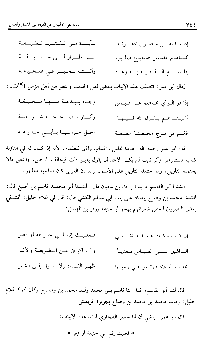 قال أبو عمر: بلغني أن أبا جعفر الطحاوي أنشد هذه الأبيات: