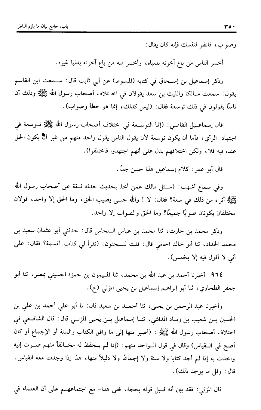 964 - أخبرنا أحمد بن عبد اللّه بن محمد، ثنا الميمون بن حمزة الحسيني بمصر، ثنا أبو جعفر الطحاوي، ثنا أبو إبراهيم إسماعيل بن يحيى المزني (ح).