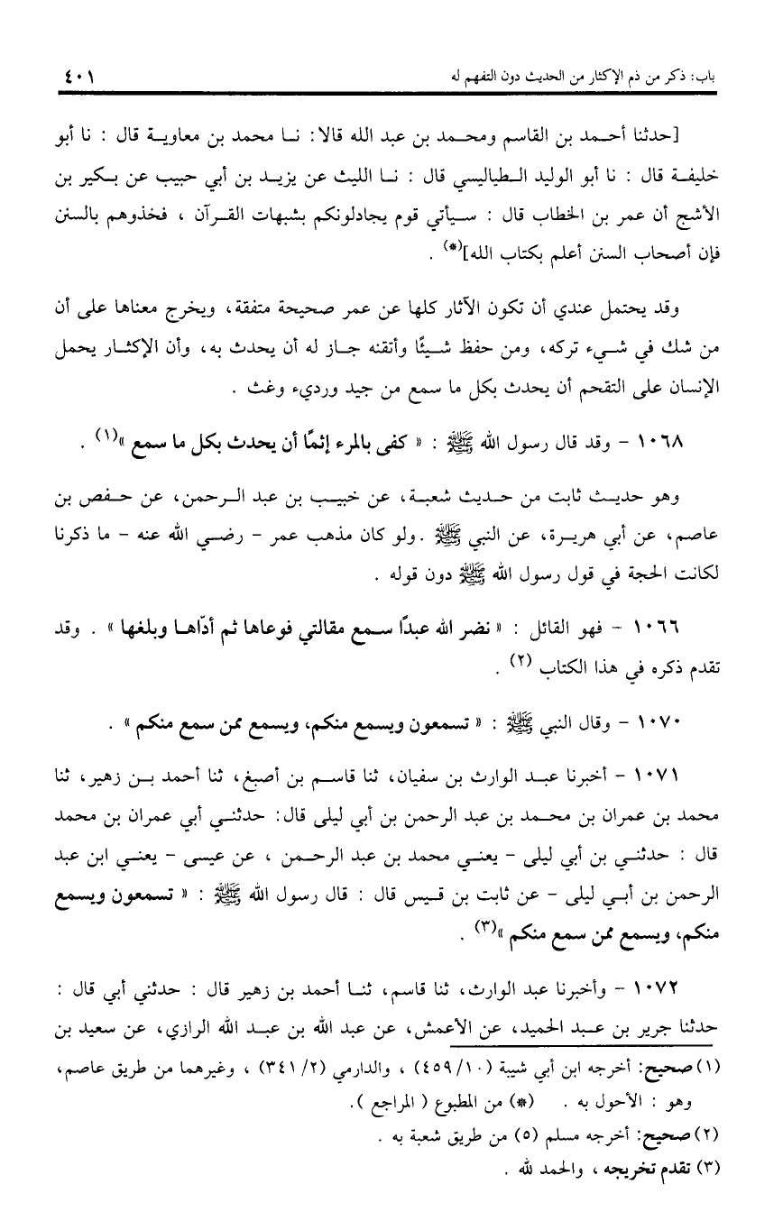 1068 - وقد قال رسول اللّه صلى اللّه عليه وسلم: «كفى بالمرء إثما أن يحدث بكل ما سمع».