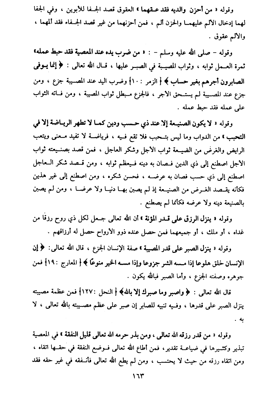 |قال الله تعالى : {واصبر وما صبرك إلا بالله} [النحل : 127] فمن عظمة مصيبته ينزل الصبر على قدرها ، وفيه تنبيه للصابر إن صبر على عظم مصيبته بالله تعالى ، لا به.