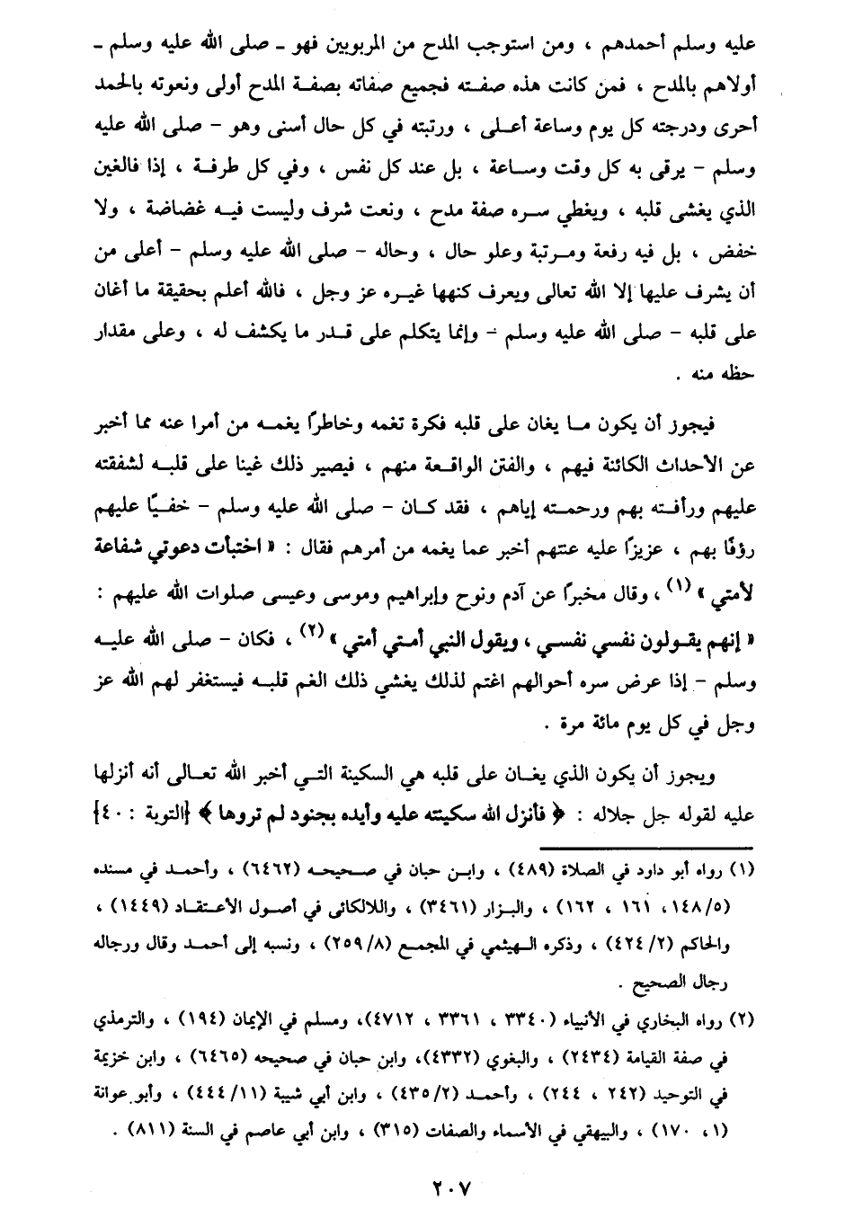 @ 207@احمدهم ، ومن استوجب المدح من المربوبين فهو صلى الله عليه وسلم أولاهم بالمدح ، فمن كانت هذه صفته فجميع صفاته بصفة المدح أولى ونعومته بالحمد احرى ودرجته كل يوم وساعة أعلى ، ورتبته في كل حال اسنى وهو صلى الله عليه وسلم يرقى به كل وقت وساعة ، بل عند كل نفس ، وفي كل طرفة ، إذا فالغين الذي يغشى قلبه ، ويغطى سره صفة مدح ، ونعت شرف وليست فيه غضاضة ، ولا خفض ، بل فيه رفعة ومرتبة وعلو حال ، وحاله صلى الله عليه وسلم أعلى من أن يشرف عليها إلا الله تعالى ويعرف كنهها غيره عز وجل ، فالله أعلم بحقيقة ما اغان على قلبه صلى الله عليه وسلم وإنما يتكلم على قدر ما يكشف له ، وعلى مقدار حظه منه.