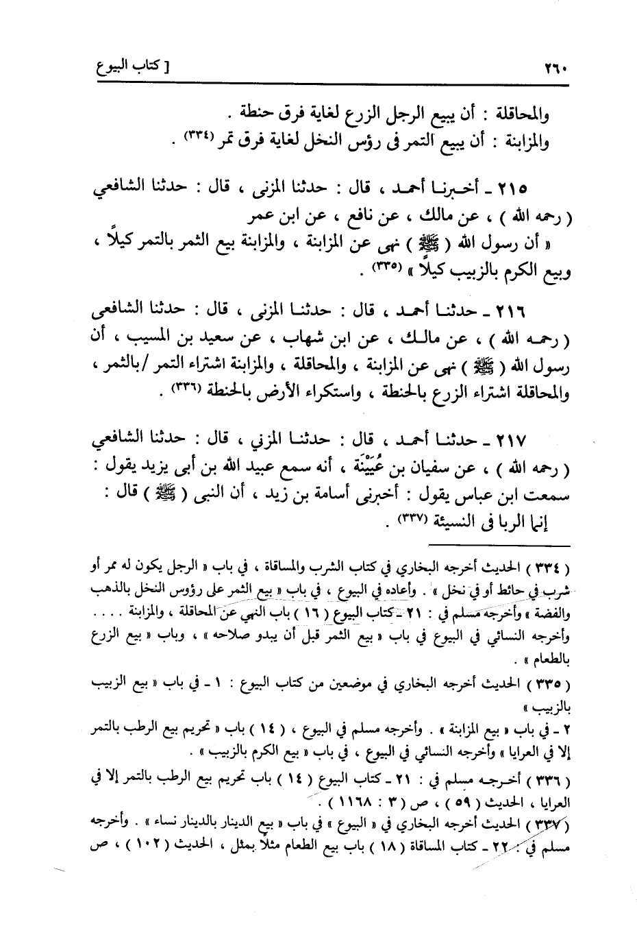 ٢١٧ - عَنْ سُفْيَانَ بْنِ عُيَيْنَةَ، أَنَّهُ سَمِعَ عُبَيْدَ اللَّهِ بْنَ أَبِي يَزِيدَ يَقُولُ: سَمِعْتُ ابْنَ عَبَّاسٍ، يَقُولُ: أَخْبَرَنِي أُسَامَةُ بْنُ زَيْدٍ، أَنَّ النَّبِيَّ صَلَّى اللهُ عَلَيْهِ وَسَلَّمَ قَالَ: «إِنَّمَا الرِّبَا فِي النَّسِيئَةِ»