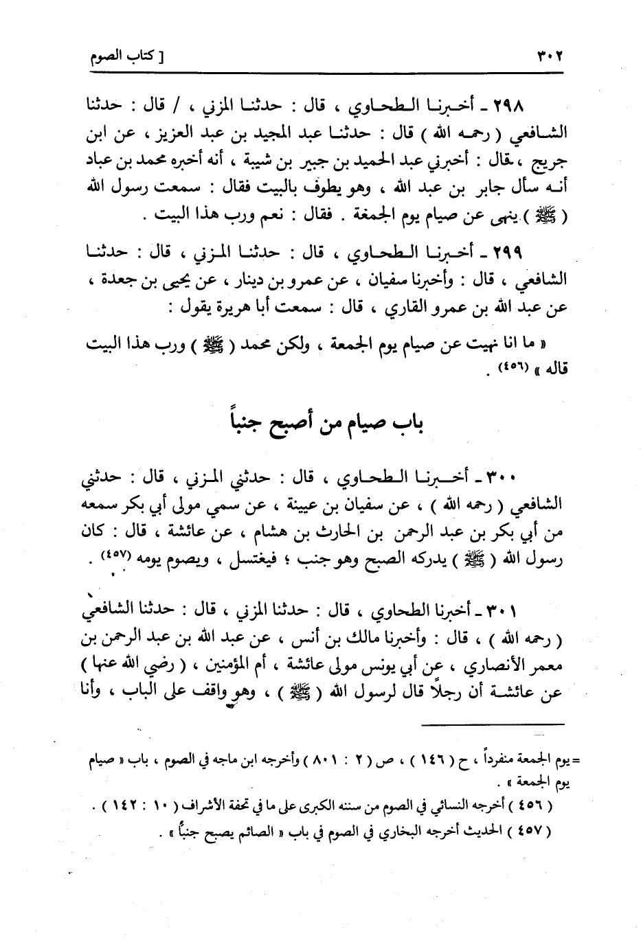 ٣٠٠ - حَدَّثَنَا سُفْيَانُ بْنُ عُيَيْنَةَ، عَنْ سُمَيٍّ مَوْلَى أَبِي بَكْرٍ سَمِعَهُ مِنْ أَبِي بَكْرِ بْنِ عَبْدِ الرَّحْمَنِ بْنِ الْحَارِثِ بْنِ هِشَامٍ، عَنْ عَائِشَةَ، قَالَتْ: كَانَ رَسُولُ اللَّهِ صَلَّى اللهُ عَلَيْهِ وَسَلَّمَ يُدْرِكُهُ الصُّبْحُ وَهُوَ جُنُبٌ فَيَغْتَسِلُ وَيَصُومُ يَوْمَهُ "