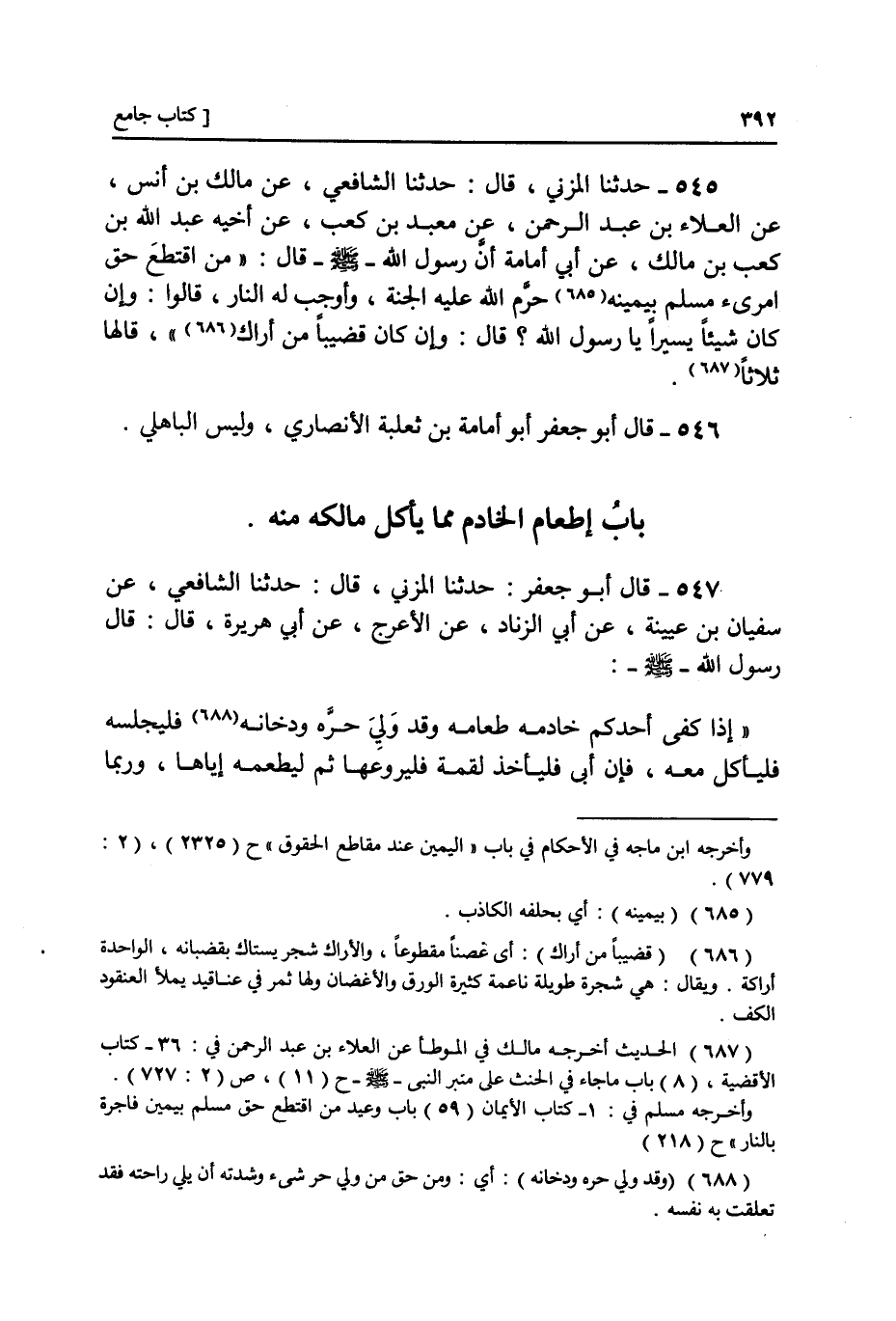 ٥٤٦ - بَابُ إِطْعَامِ الْخَادِمِ مِمَّا يَأْكُلُ مِنْهُ مَالِكُهُ