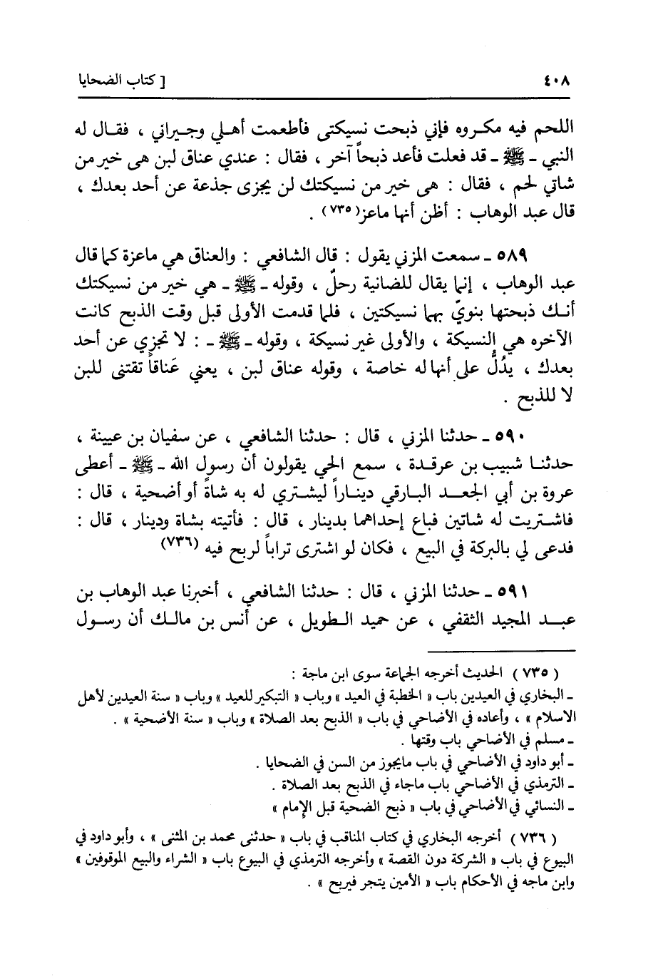 ٥٩١ - أَنْبَأَنَا عَبْدُ الْوَهَّابِ بْنُ عَبْدِ الْمَجِيدِ الثَّقَفِيُّ، عَنْ حُمَيْدٍ الطَّوِيلِ، عَنْ أَنَسِ بْنِ مَالِكٍ، أَنَّ رَسُولَ اللَّهِ صَلَّى اللهُ عَلَيْهِ وَسَلَّمَ ضَحَّى بِكَبْشَيْنِ أَمْلَحَيْنِ "